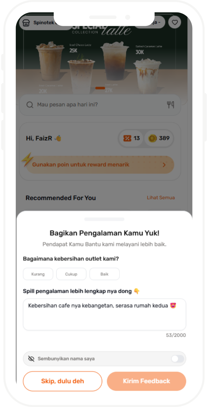 Spinofy membantu coffeeshop memahami keputusan kecil pelanggan melalui feedback yang terstruktur dan insight yang relevan